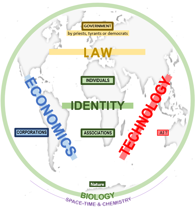 To begin with, I wanted to locate economics within the wider social context. This is what I eventually came up with, showing the fundamental building blocks of society and those with agency to change it (here shown, ironically, boxed in!)
